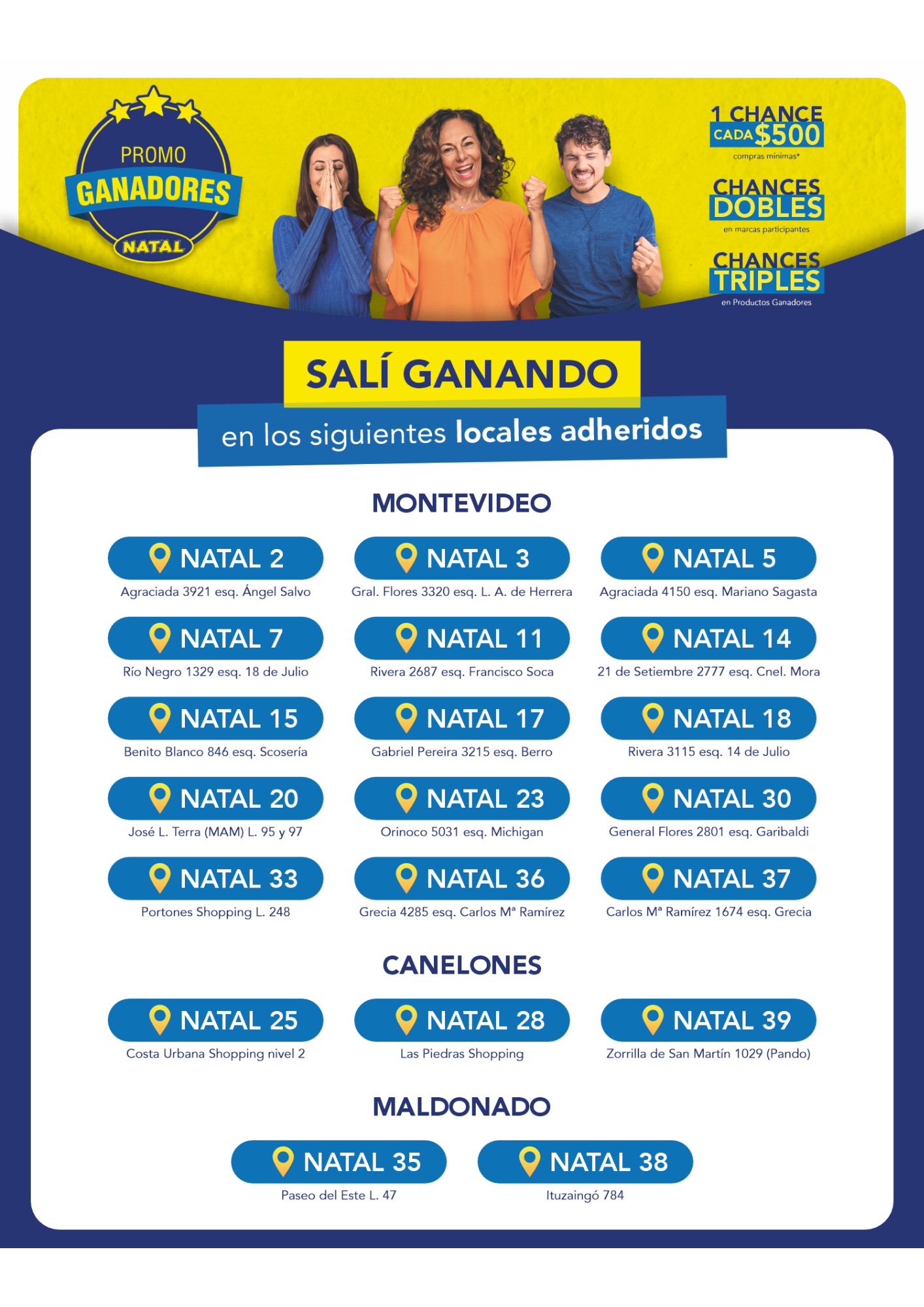 Sólo estarán adheridos a esta promoción, los locales citados anteriormente, y estarán identificadas con un cartel de “LOCAL ADHERIDO”, en este sentido si la sucursal de Natal no está adherida e identificada con este cartel no participa de la presente promoción.